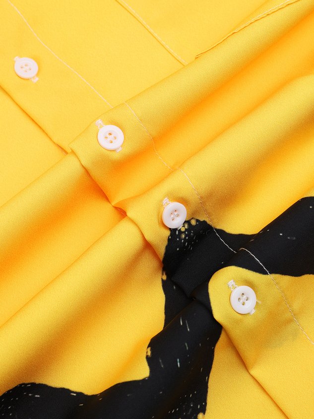 Cartoon Chest Pocket Short Sleeves Casual Shirt